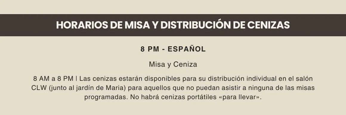 Gracias por estar aquí con nosotros. Nos hemos movido de la iglesia principal debido a nuestra Campaña Trascender, la cual durará entre 6 y 9 meses. Aún así te animamos a acompañarnos en alguna de nuestras Misas. Gracias por su paciencia, flexibilidad y comprensión.